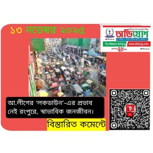 রংপুরের সকালটা আজও ছিল তার চিরচেনা ভঙ্গিতে। সিটি বাজারের ভিড়, পায়রা চত্বরের কোলাহল, জাহাজ কোম্পানি মোড়ের যানজট—সবকিছু যেন এক অদৃশ্য ছন্দে বাজছিল। অথচ এই দিনেই আওয়ামী লীগ ঘোষণা করেছিল ‘লকডাউন’। কিন্তু শহর তা যেন আমলে নেয়নি। মানুষের মুখে নেই আতঙ্কের ছায়া, রাস্তায় নেই শূন্যতার কোন চিহ্ন—বরং জনজীবন স্বাভাবিক ও স্বস্তিময়।