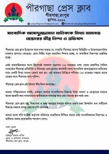 পীরগাছা প্রেস ক্লাব এক বিবৃতিতে নিন্দা জানিয়েছে,