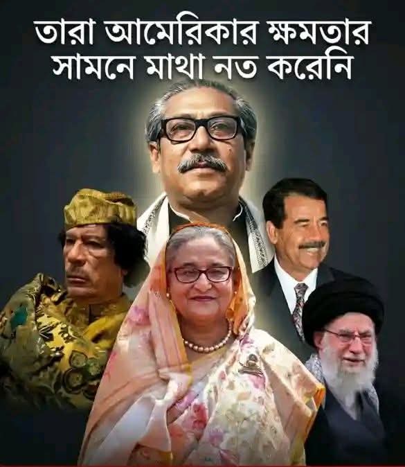 তারা কেউই আমেরিকার সামনে মাথা নত করেনি। বঙ্গবন্ধু, সাদ্দাম, গাদ্দাফি কিংবা শেখ হাসিনা সবাই নিজেদের সার্বভৌমত্বকে অগ্রাধিকার দিয়েছিলেন। এই প্রতিরোধের মূল্য তাঁদের জীবন ও দেশের স্থিতিশীলতা দিয়ে দিতে হয়েছে। কিন্তু ইতিহাস সাক্ষী যারা মাথা নত করেনি, তাদের নাম মানুষের হৃদয়ে বেঁচে থাকে। আর যারা নত হয়েছে, তারা শুধু ক্ষমতায় টিকে থাকার জন্যই টিকে থাকে, ইতিহাসে নয়।